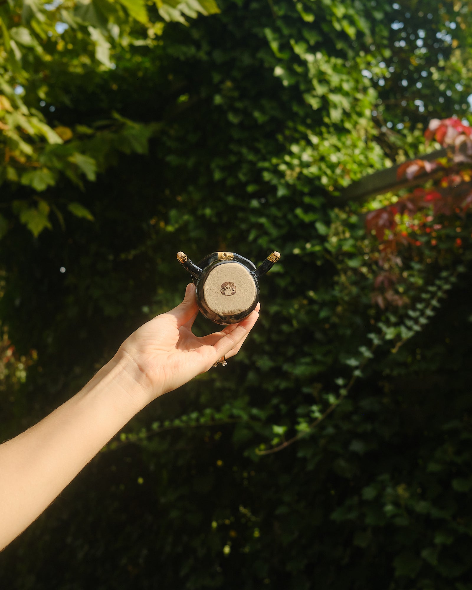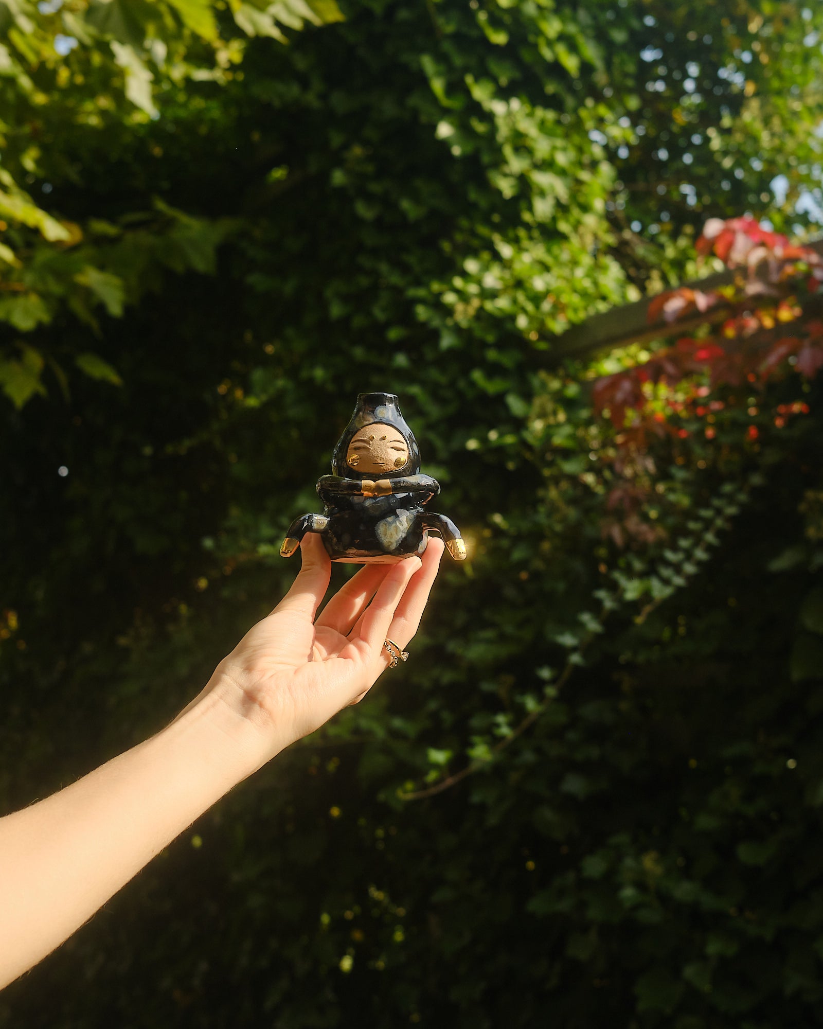 A natural protector of the flora. Doesn't ever say much, but it's presence is soothing. Hand sculpted stoneware bud vase embellished in starry 24k gold lustre details.