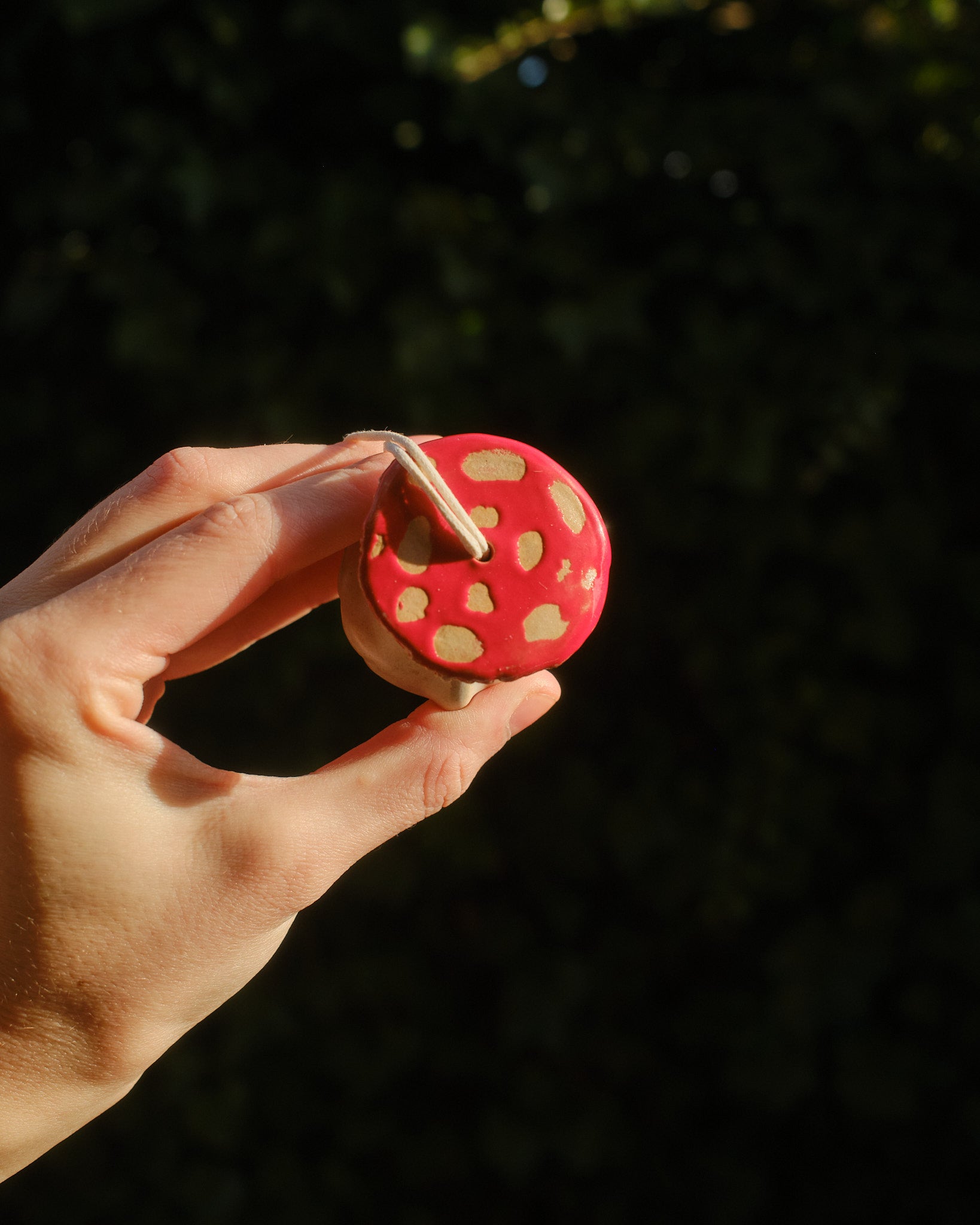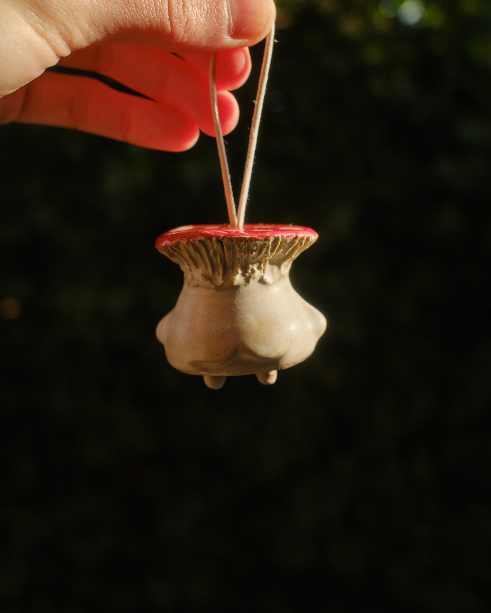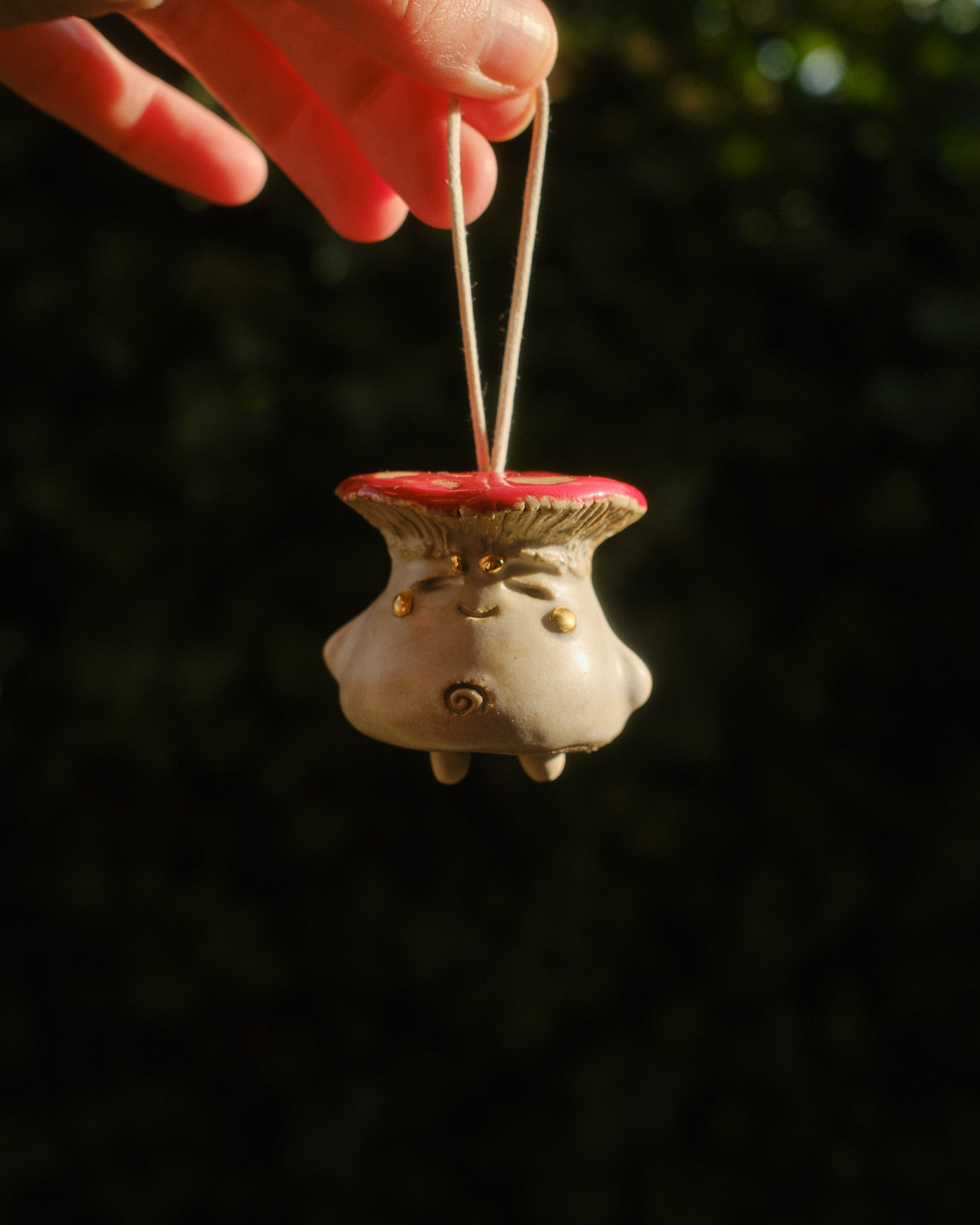 Hand sculpted stoneware ornament embellished in 24k gold lustre details.