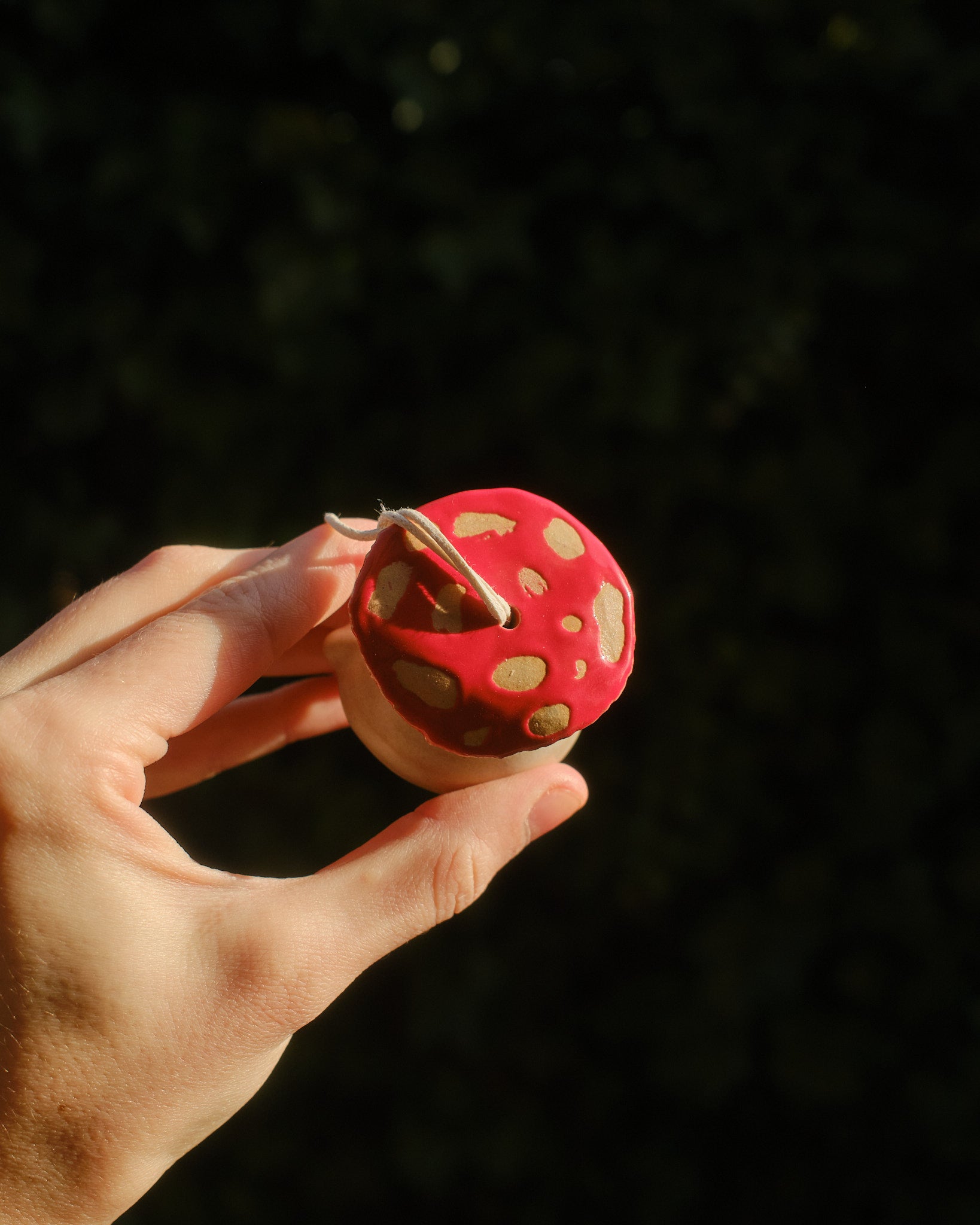 Hand sculpted stoneware ornament embellished in 24k gold lustre details.