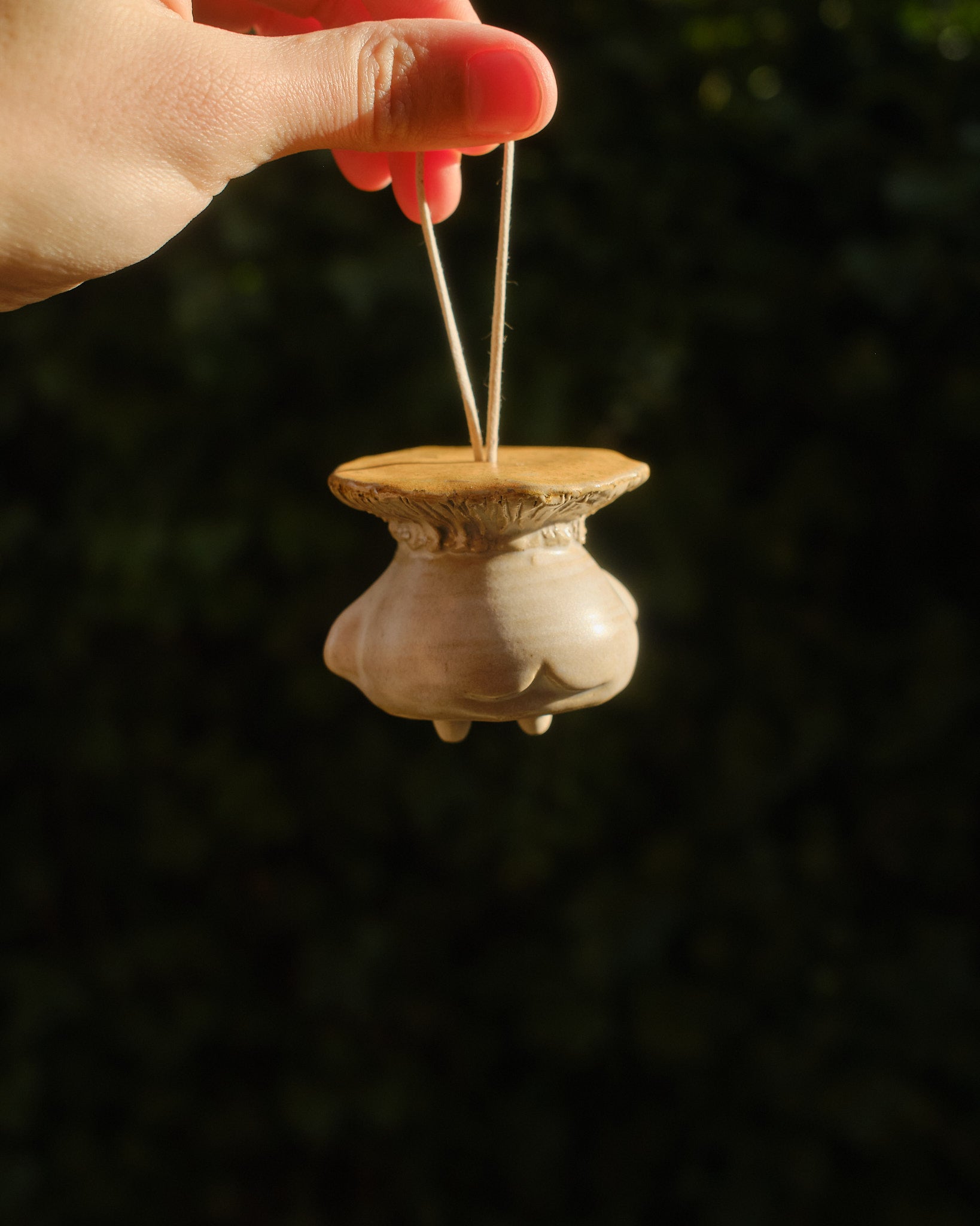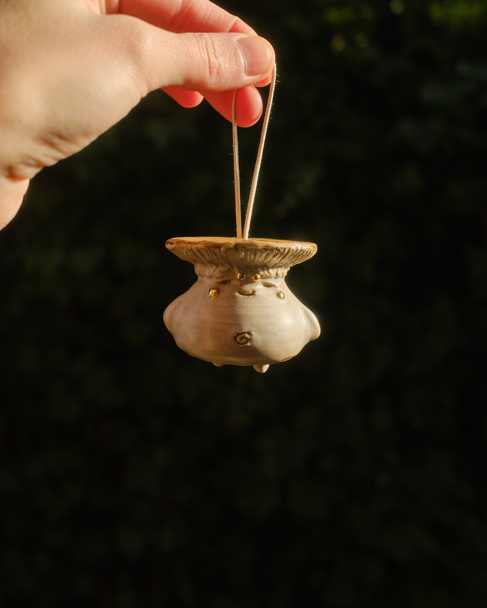 Hand sculpted stoneware ornament embellished in 24k gold lustre details.