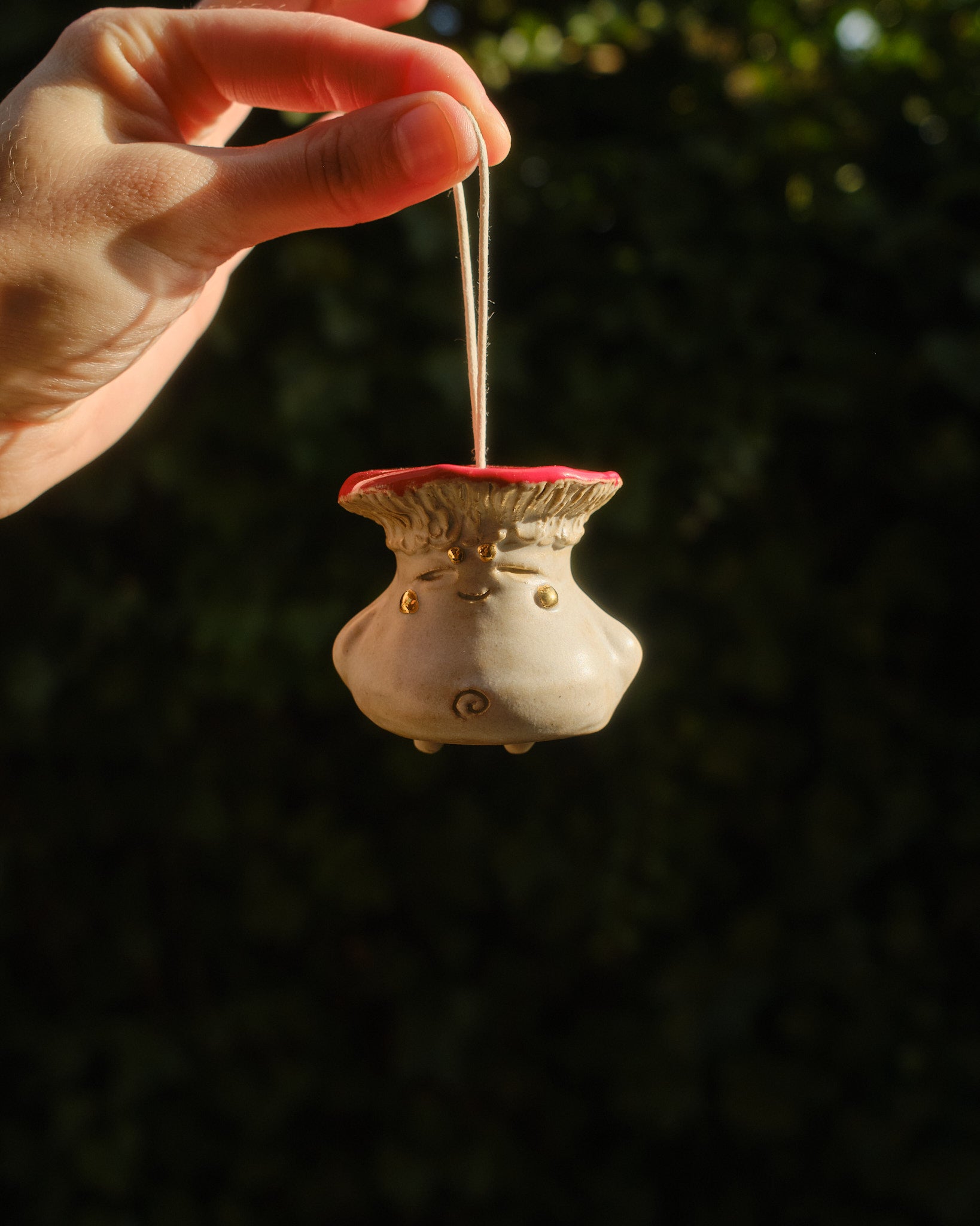 Hand sculpted stoneware ornament embellished in 24k gold lustre details.