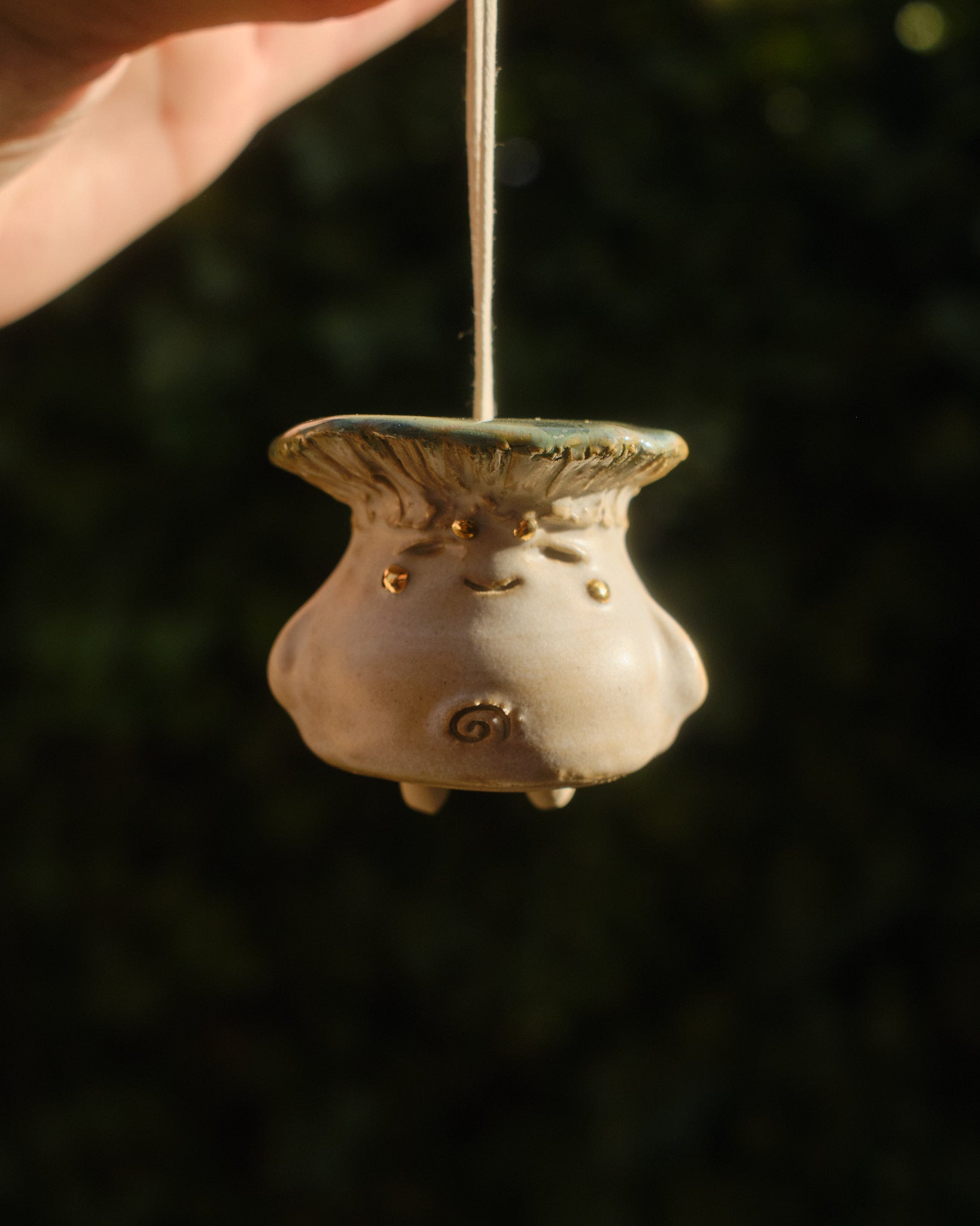 Hand sculpted stoneware ornament embellished in 24k gold lustre details.