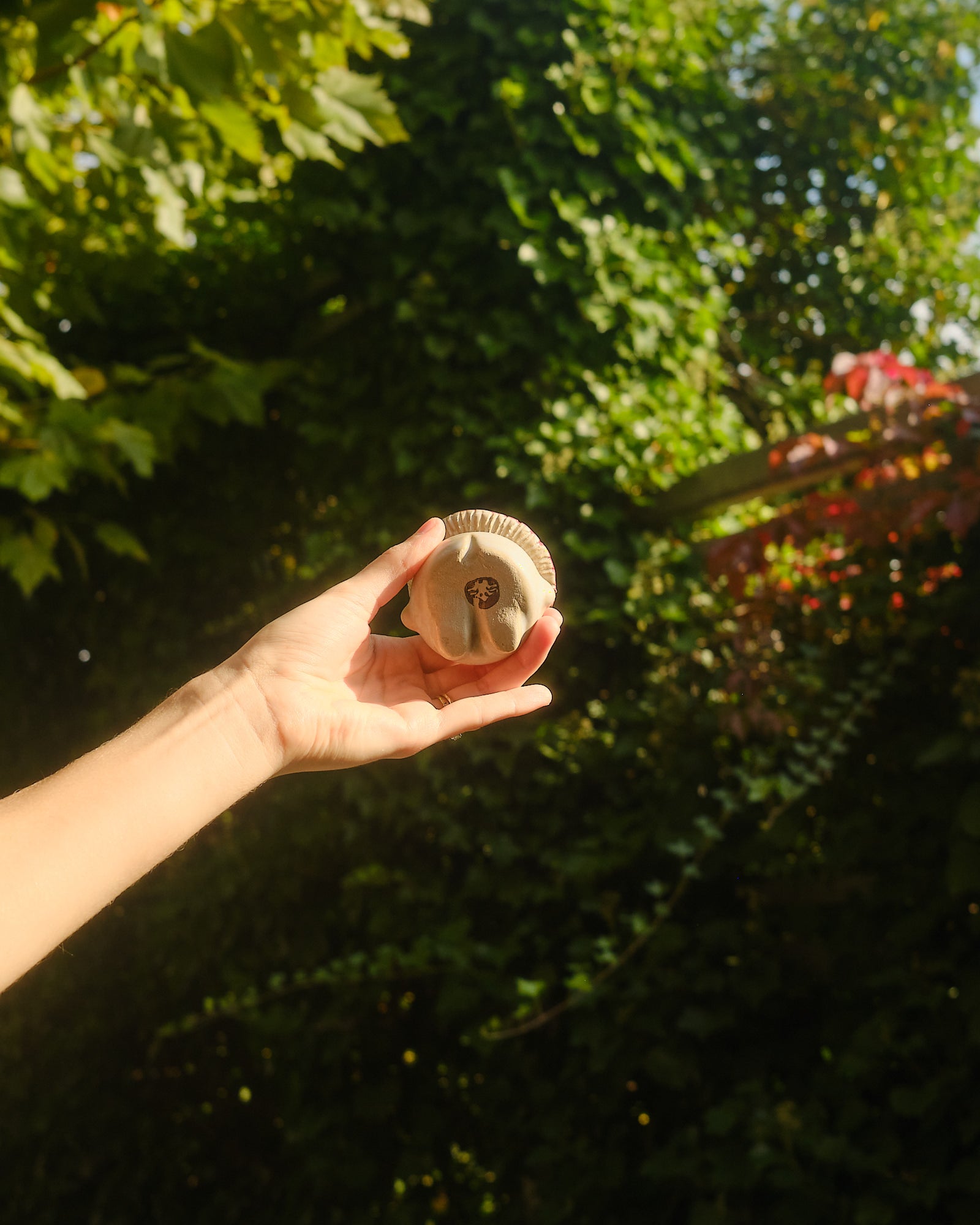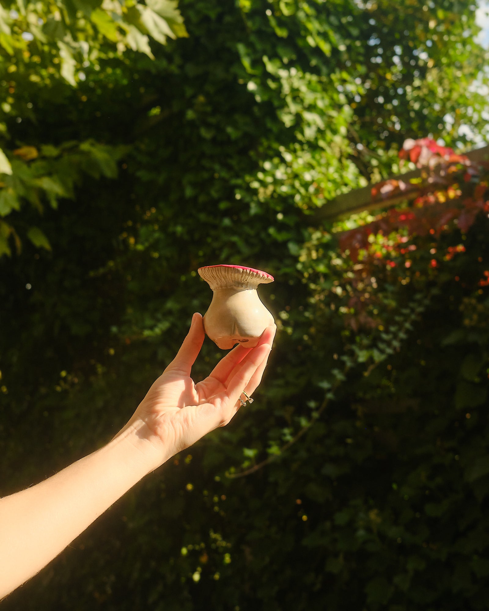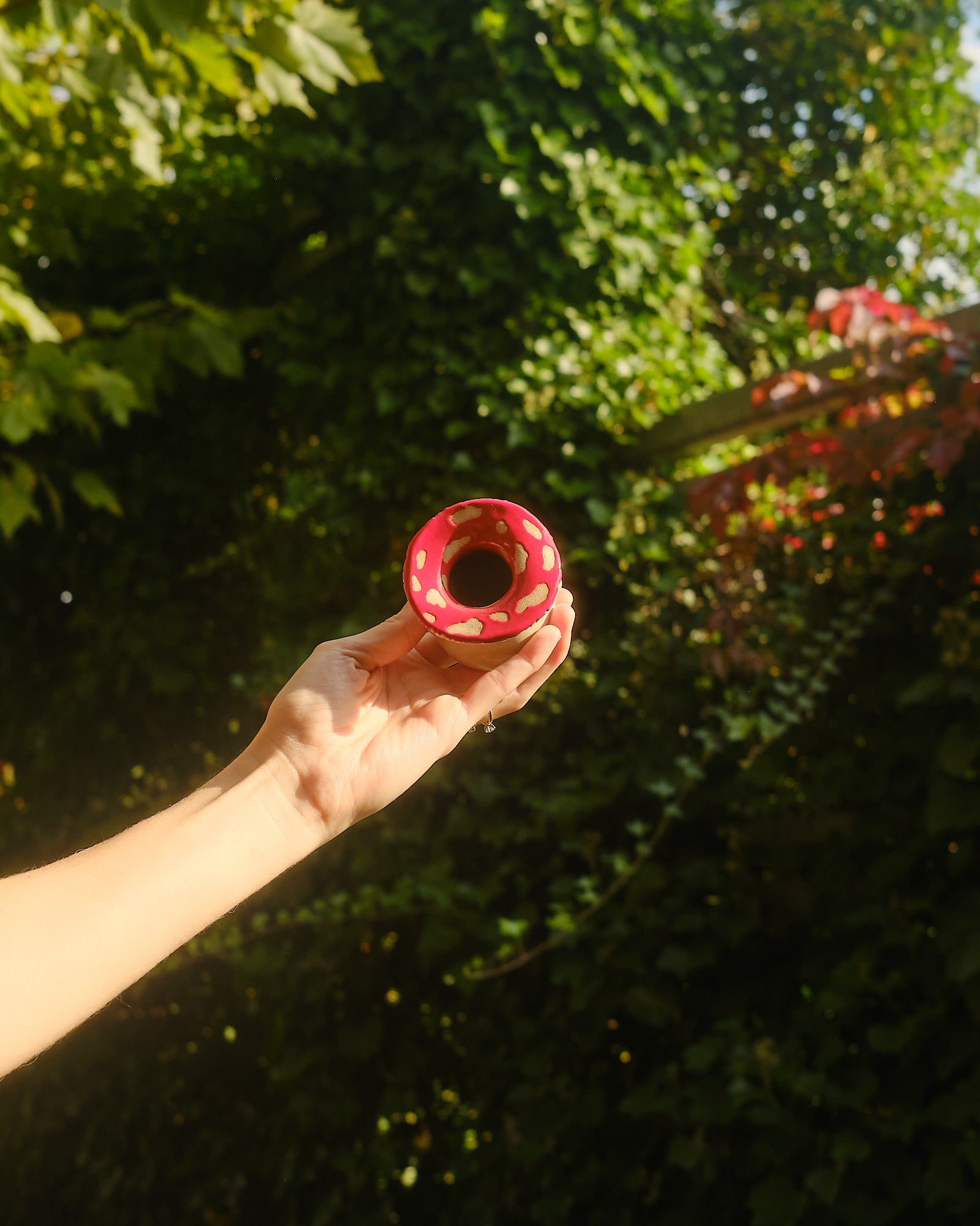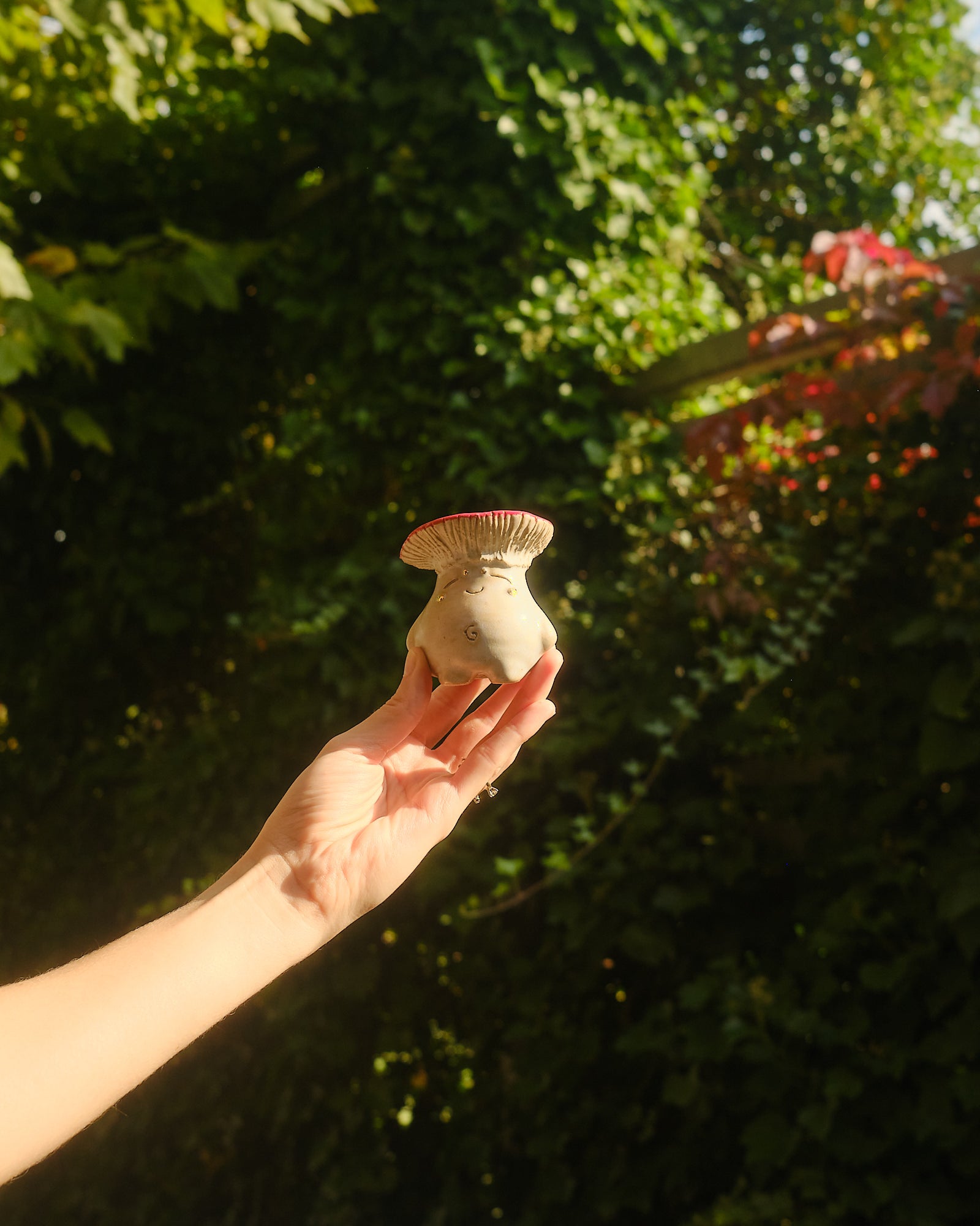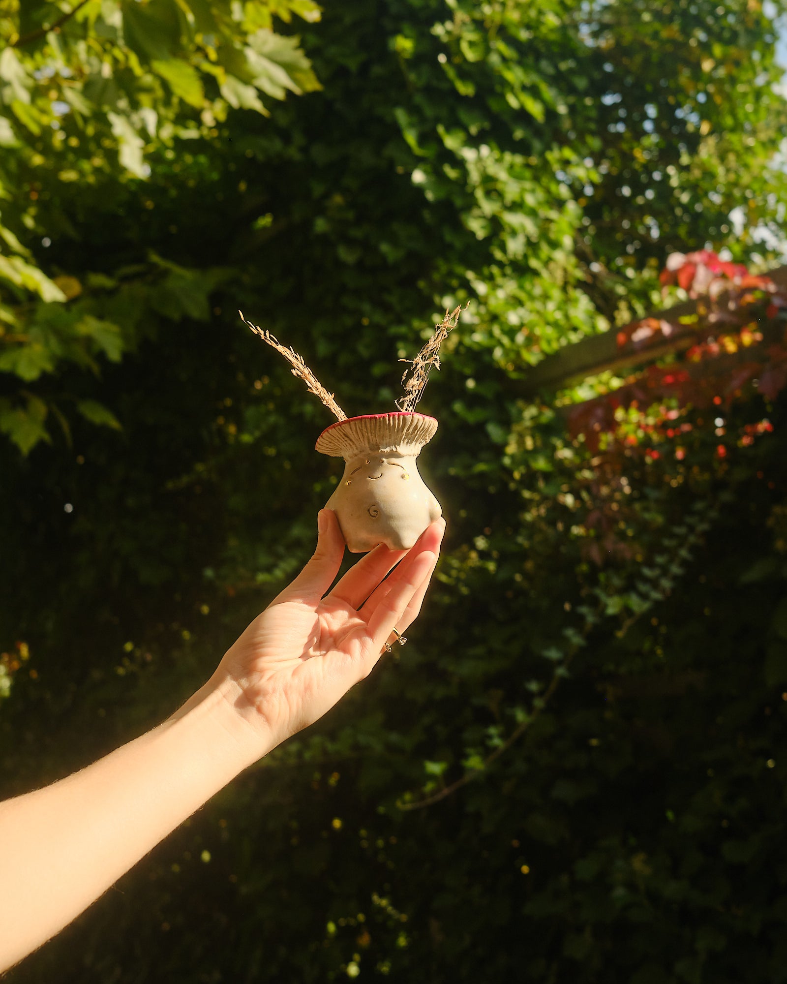 Hand sculpted stoneware bud vase embellished in 24k gold lustre details.